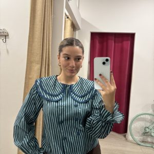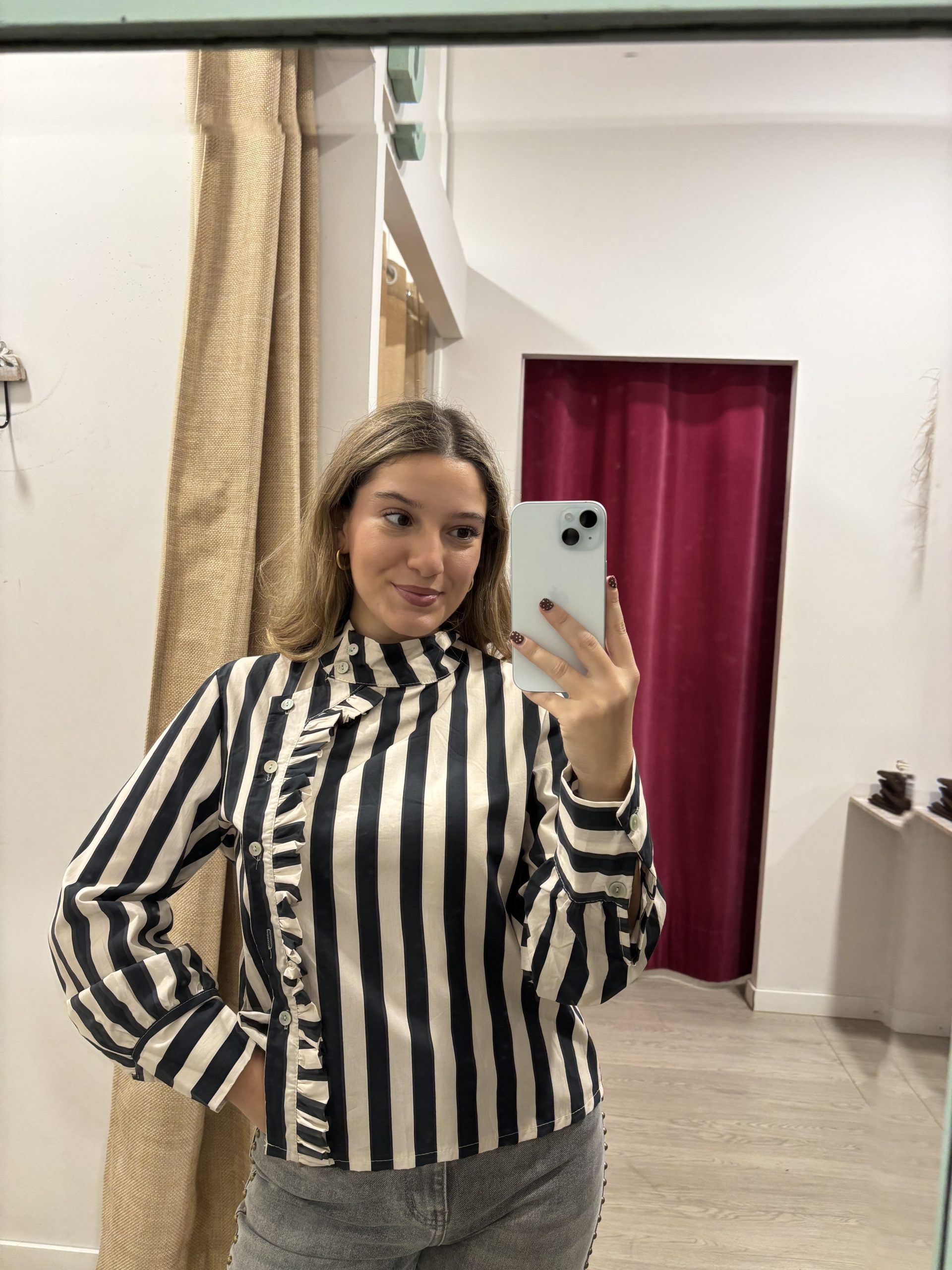 blusa estampado rayas , cuello tirilla , talla única , válido para 36,38