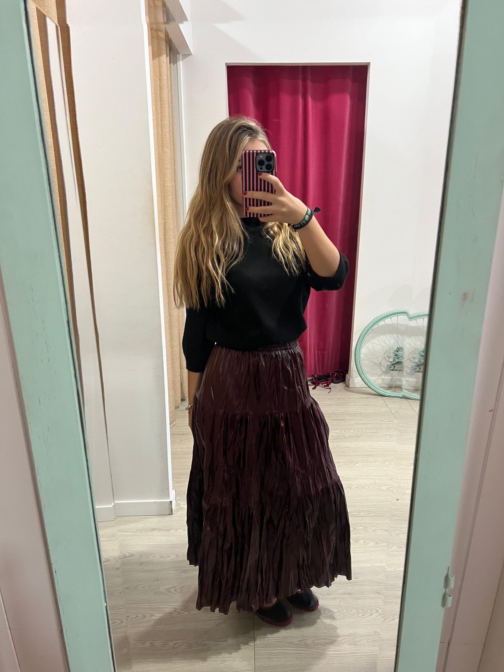 falda tejido arrugado, largo midi, talla única, válido para 36,38