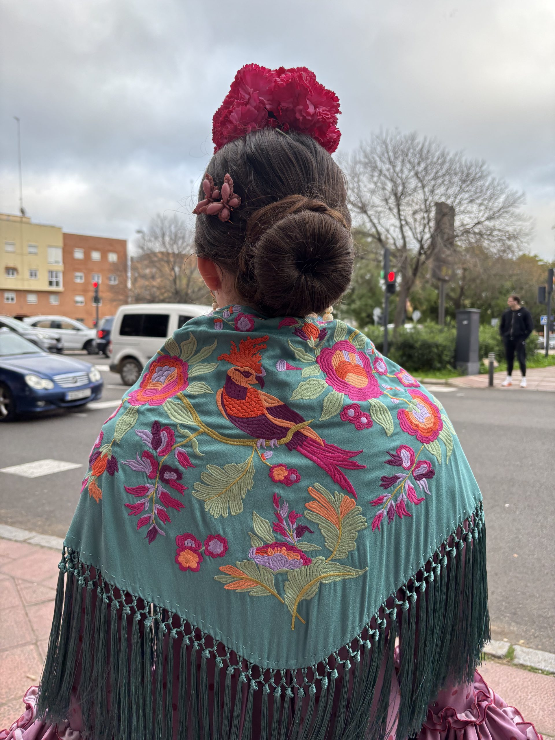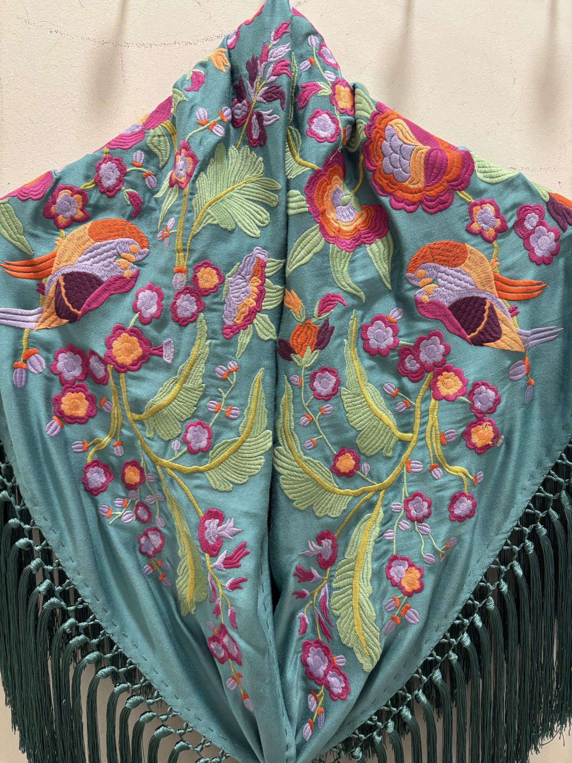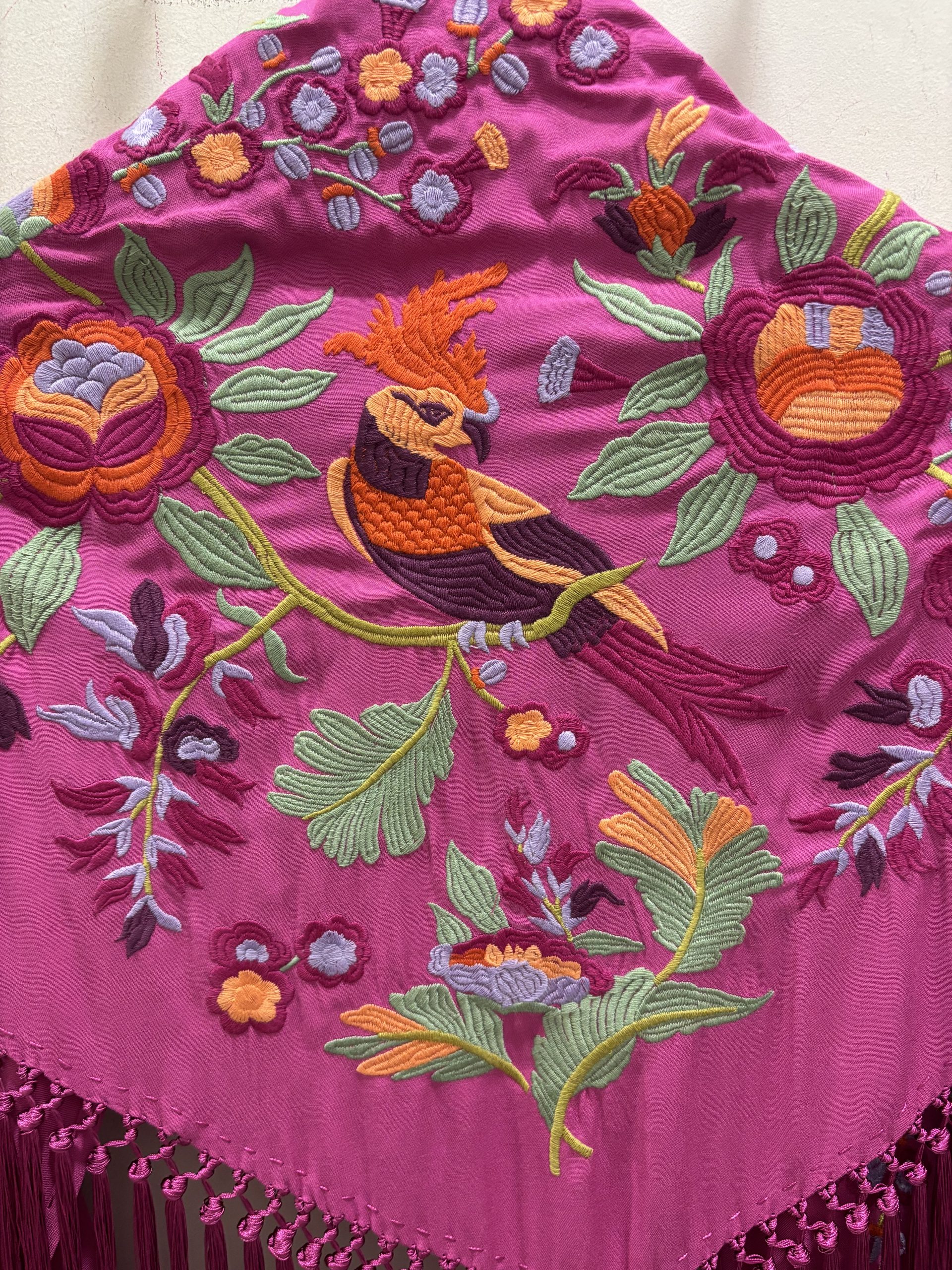 mantoncillo algodón , flecado a mano , bordado a bastidor