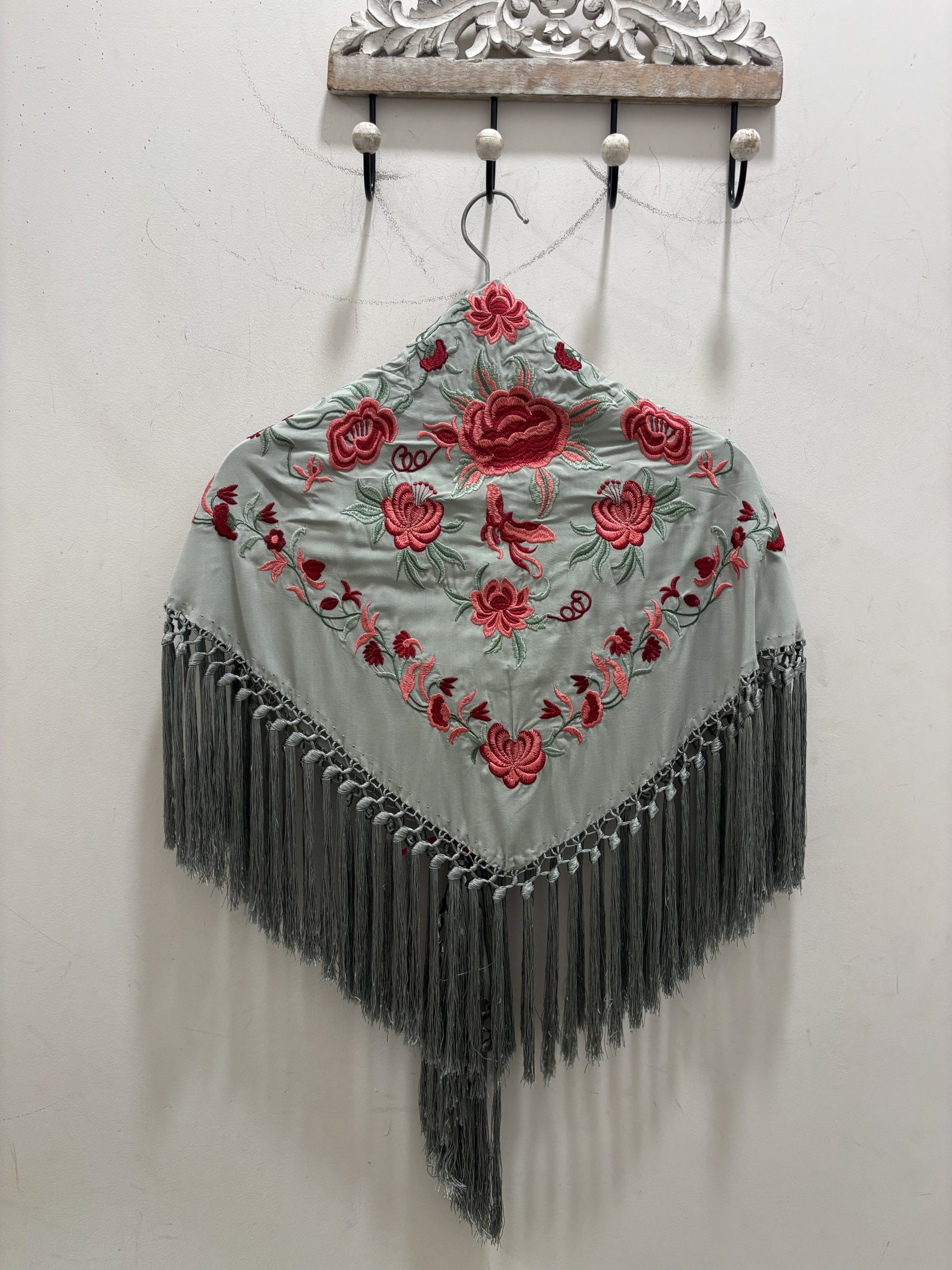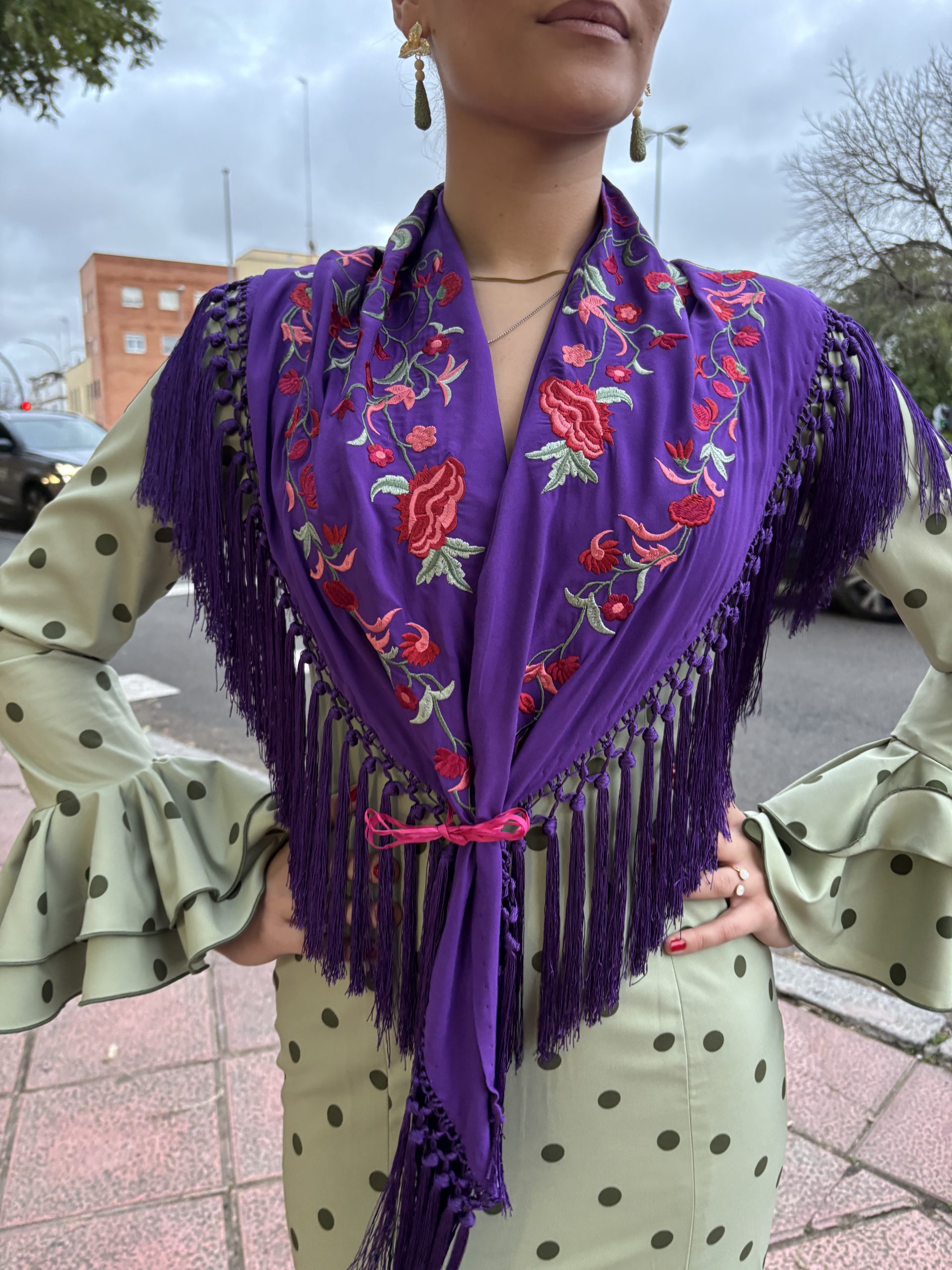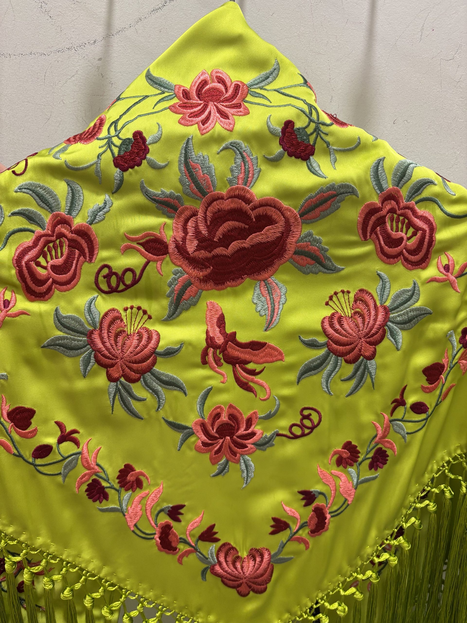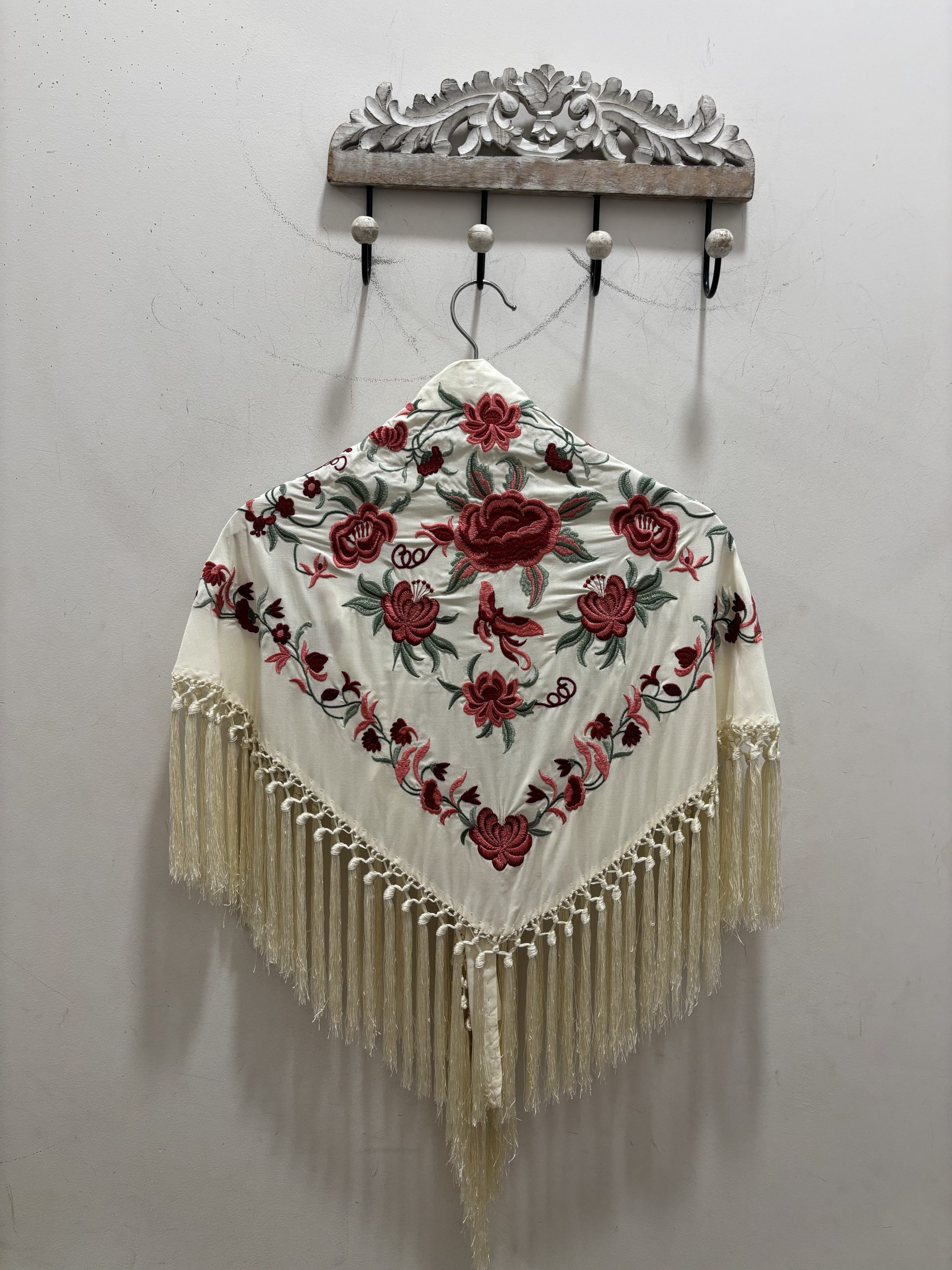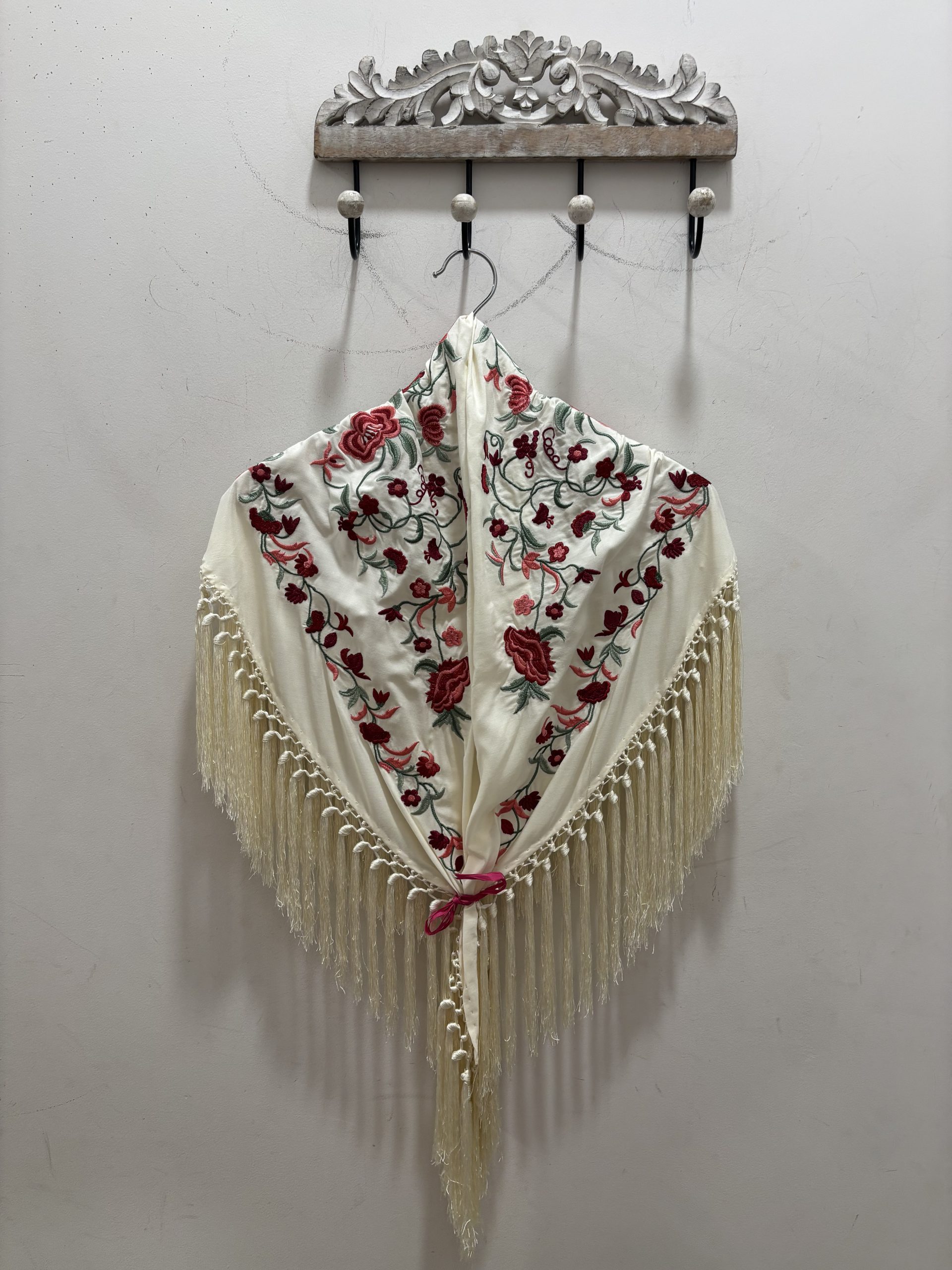 mantoncillo  algodón de seda, flecado a mano, bordado a bastidor