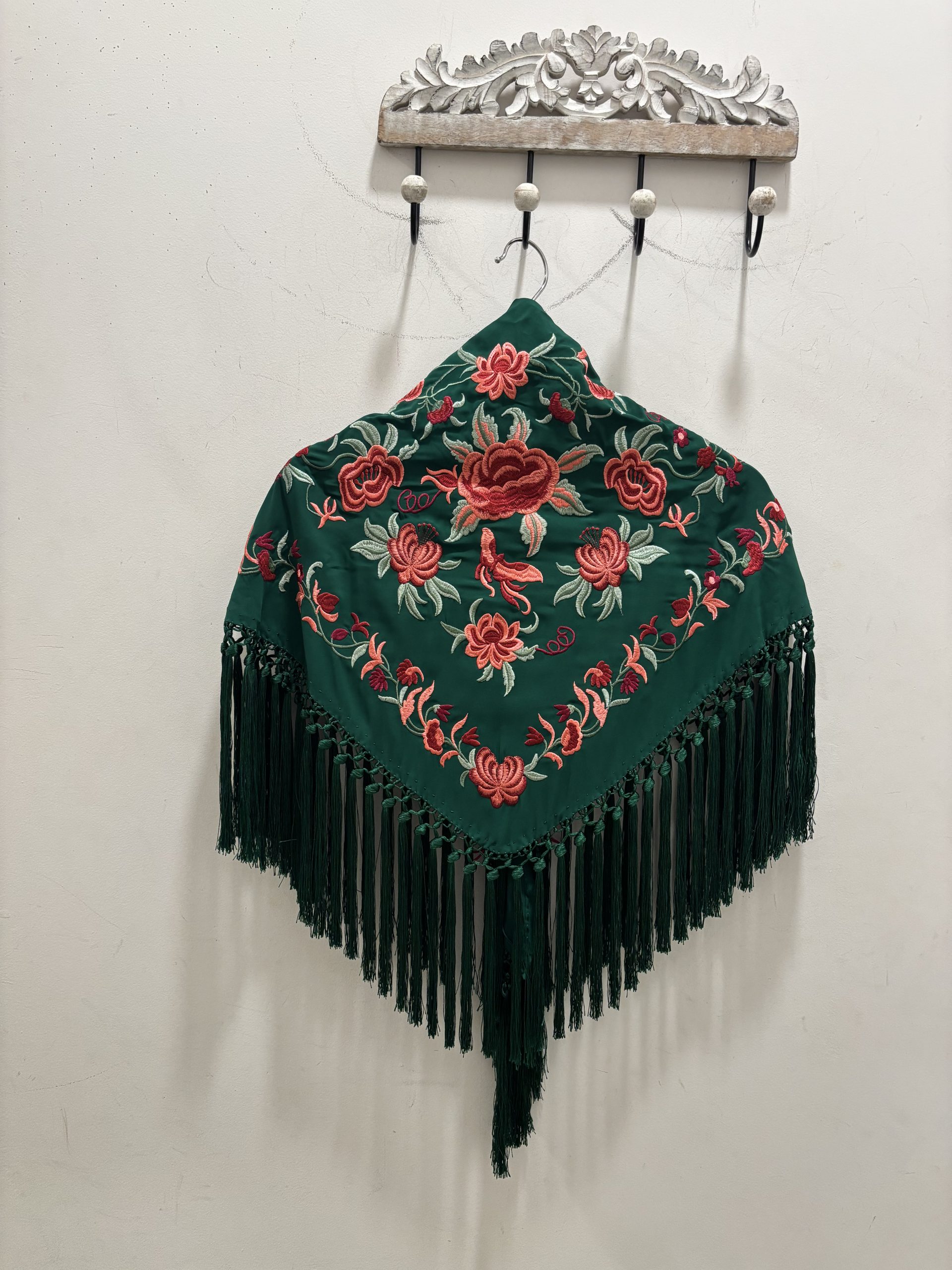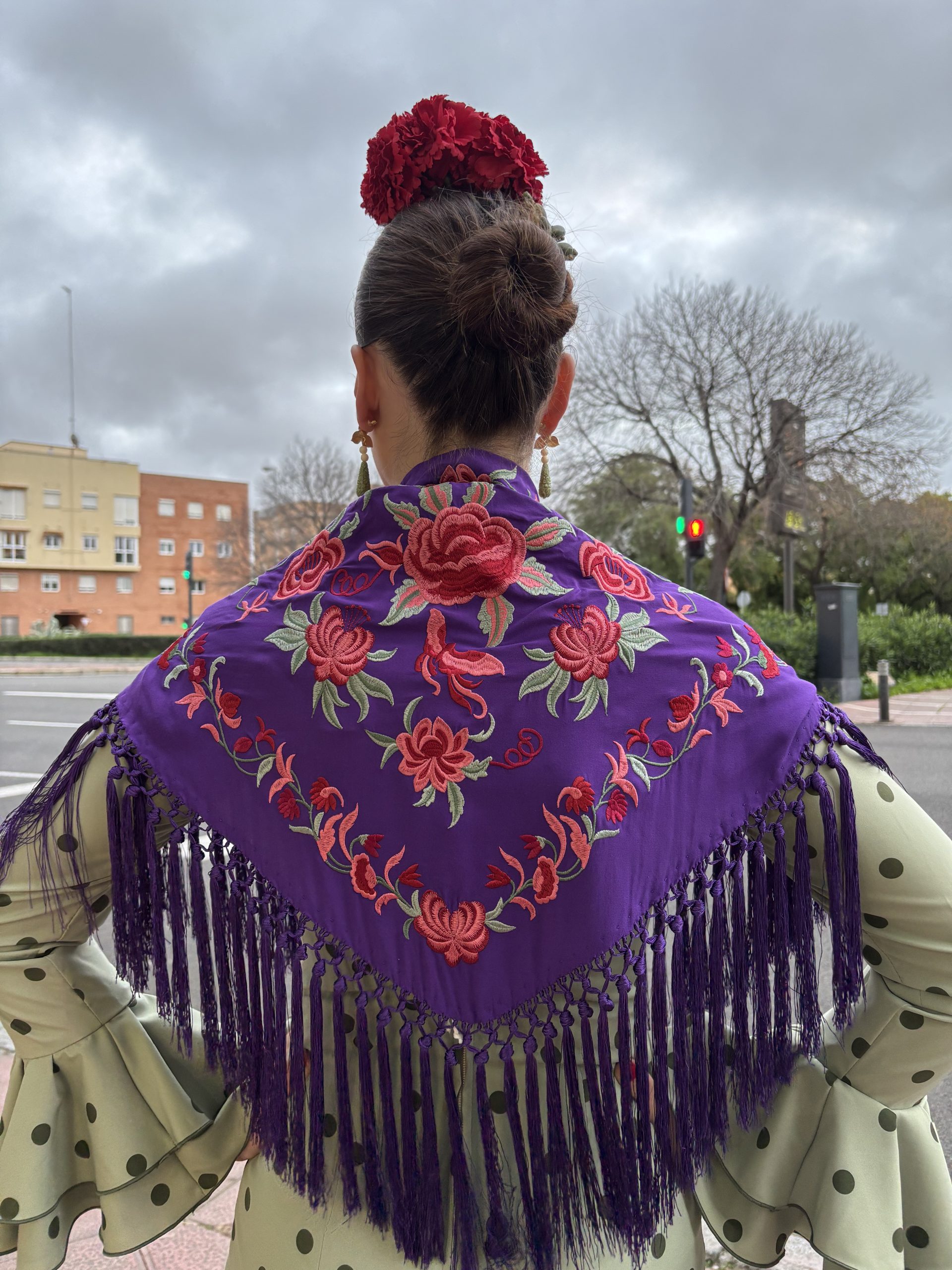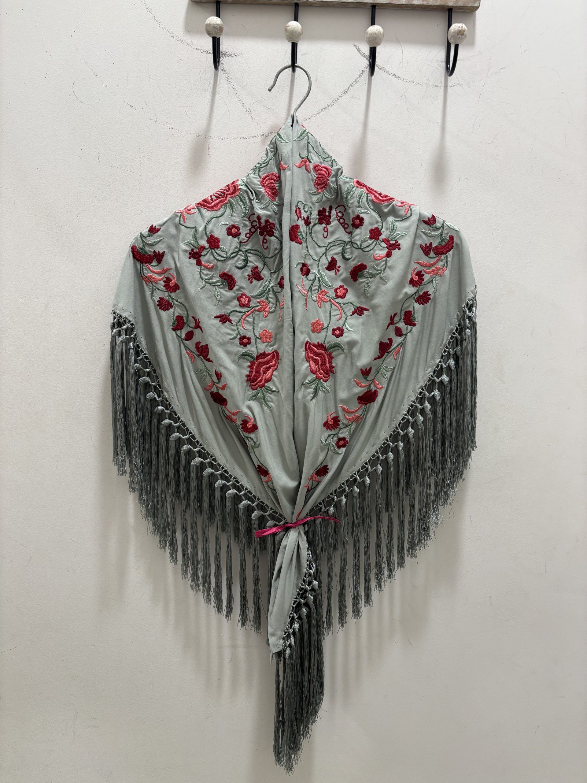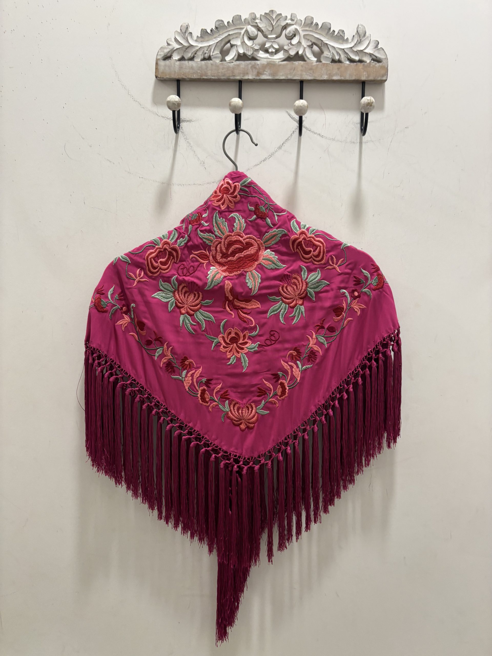 mantoncillo  algodón de seda, flecado a mano, bordado a bastidor