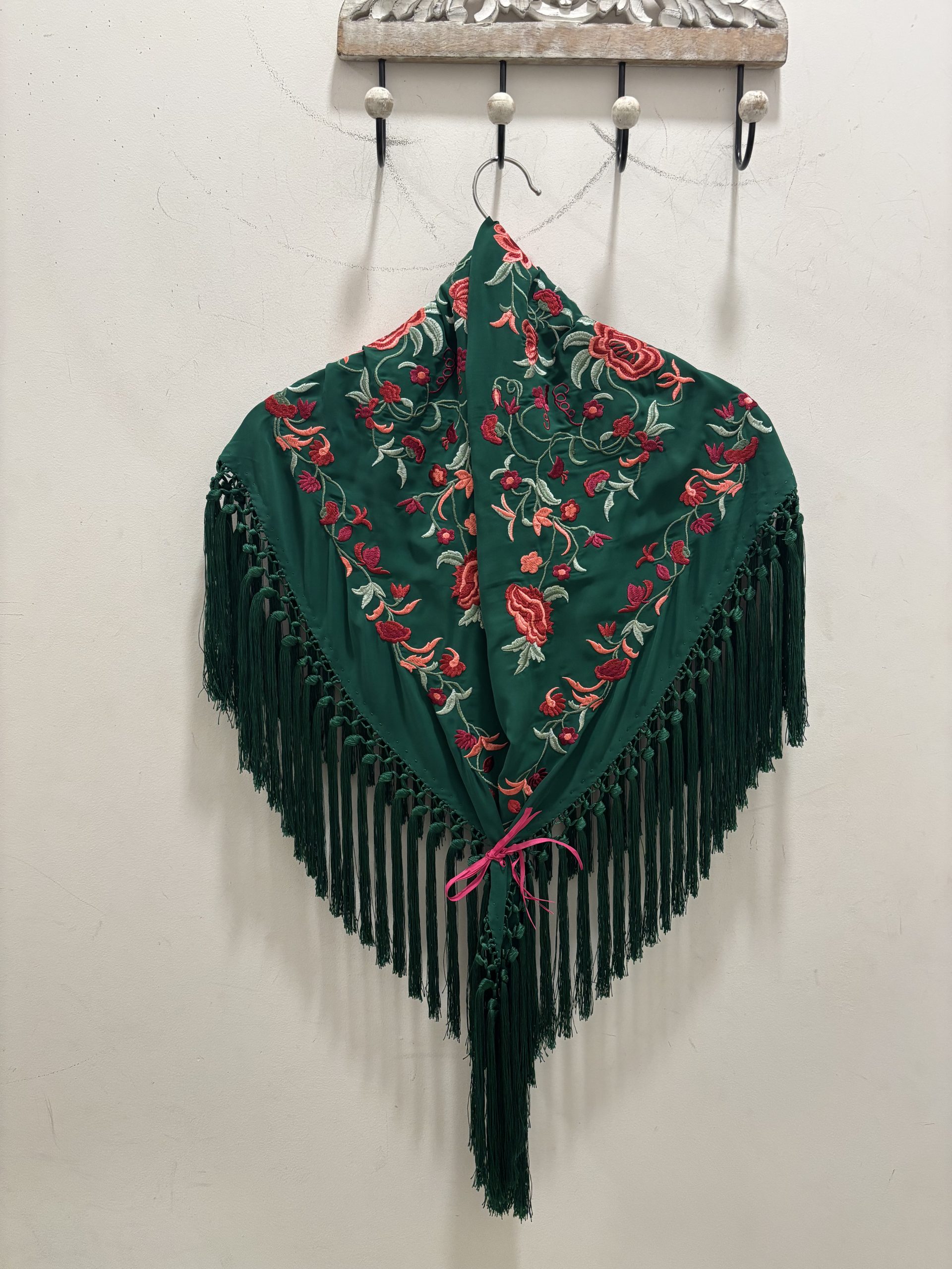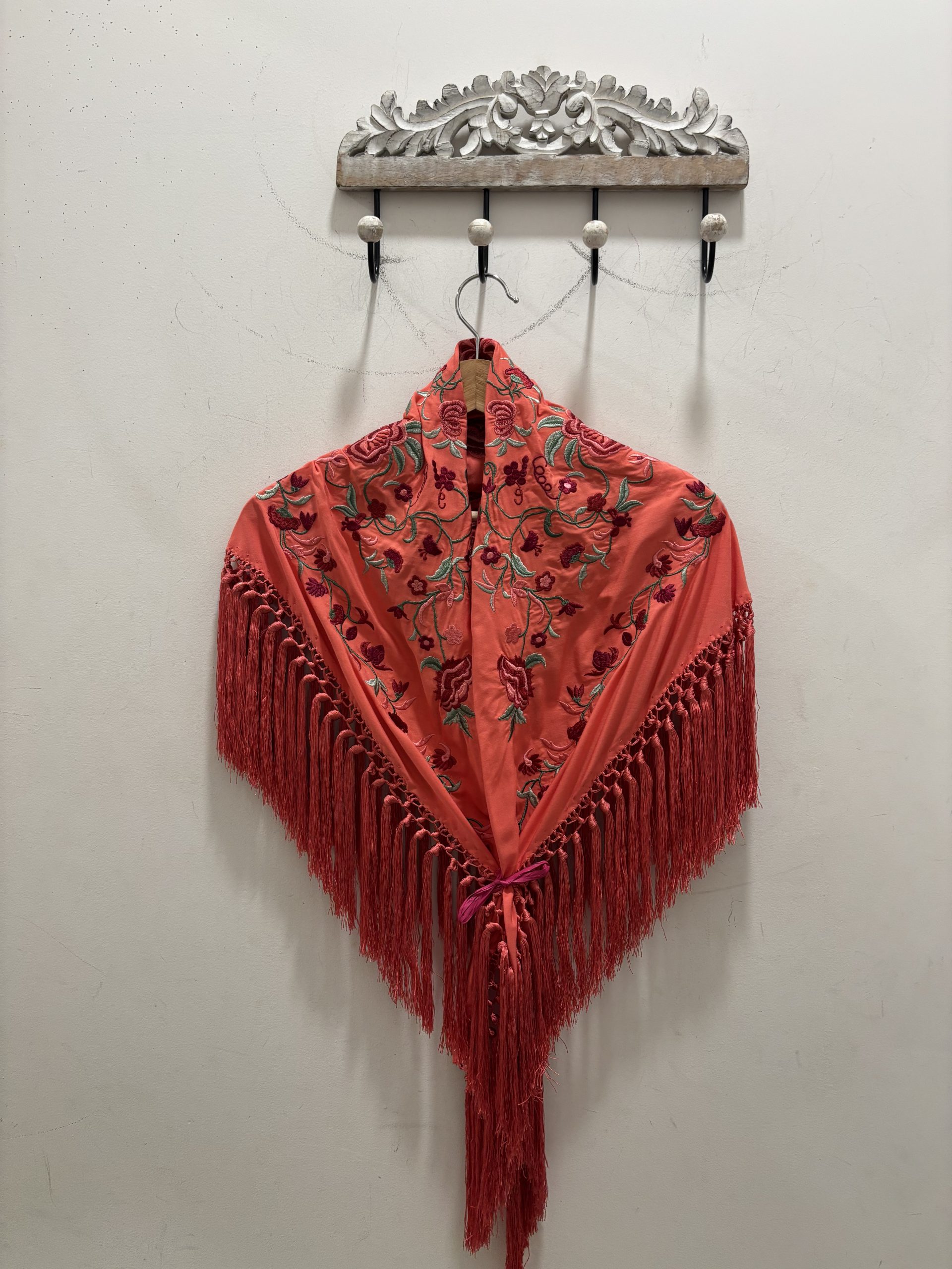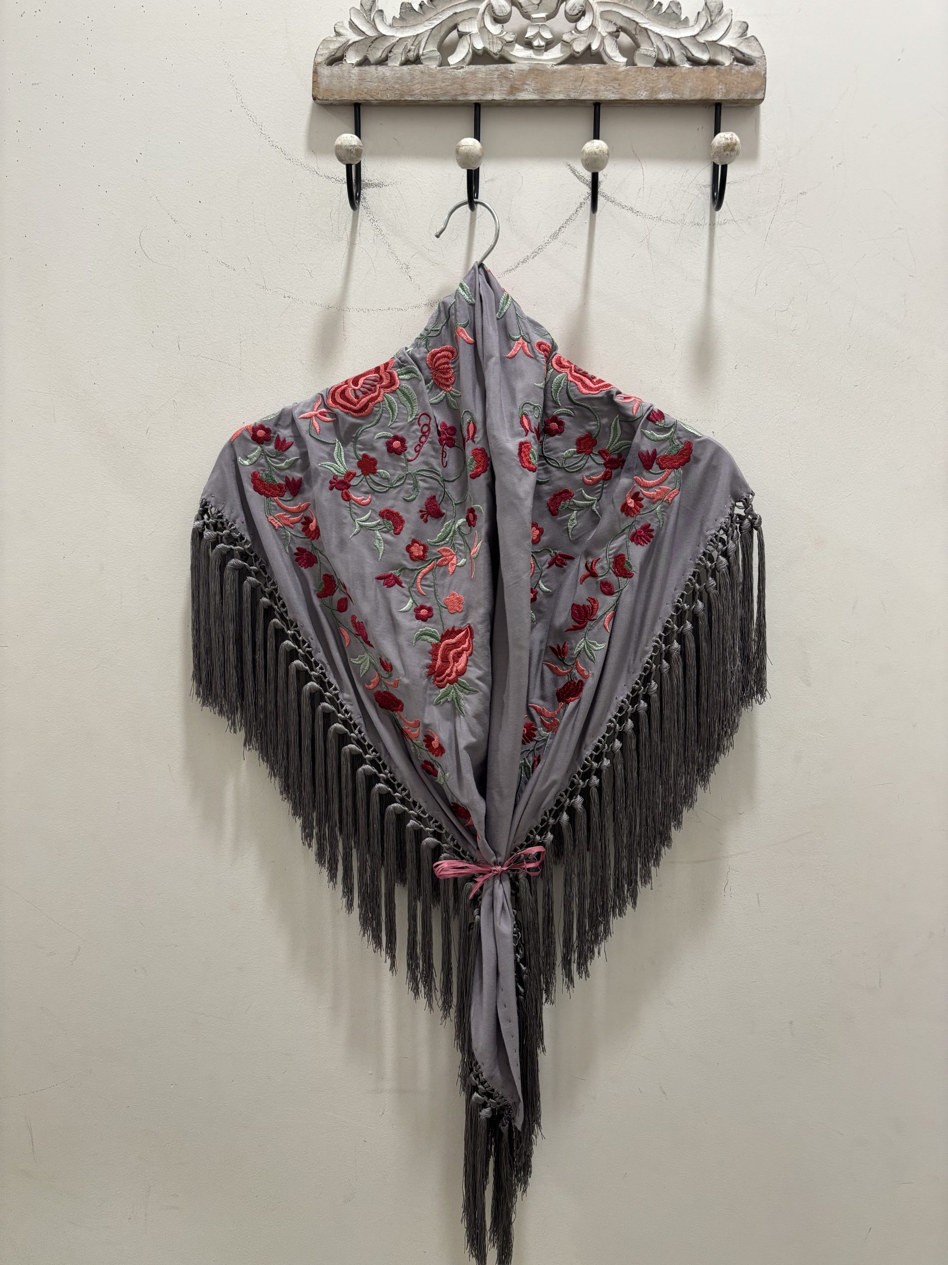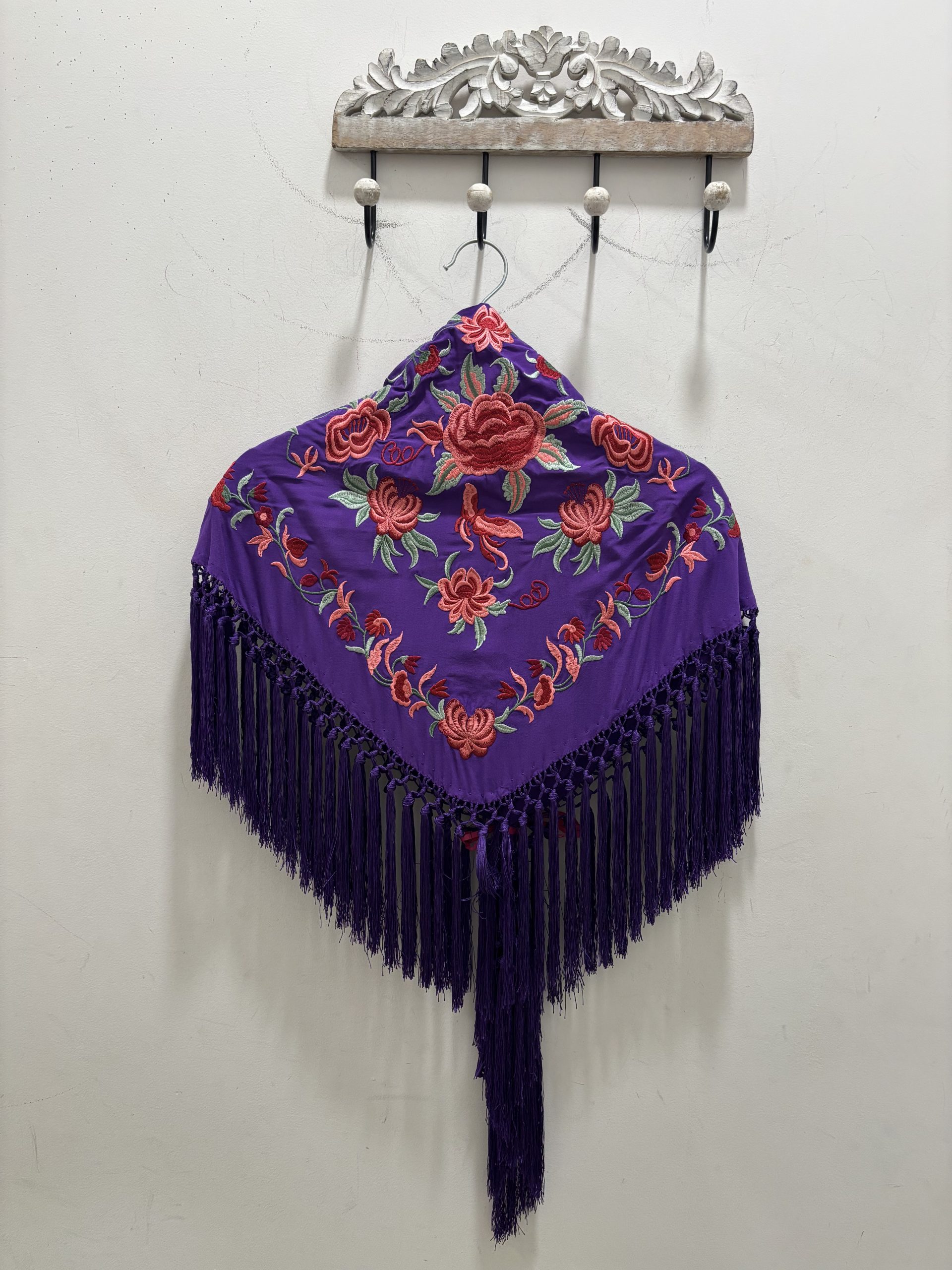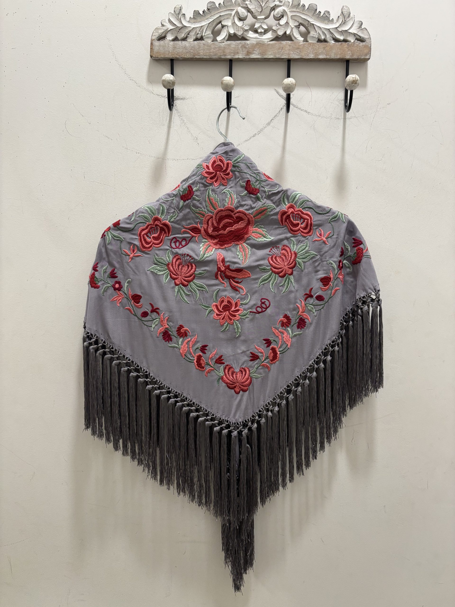 mantoncillo  algodón de seda, flecado a mano, bordado a bastidor