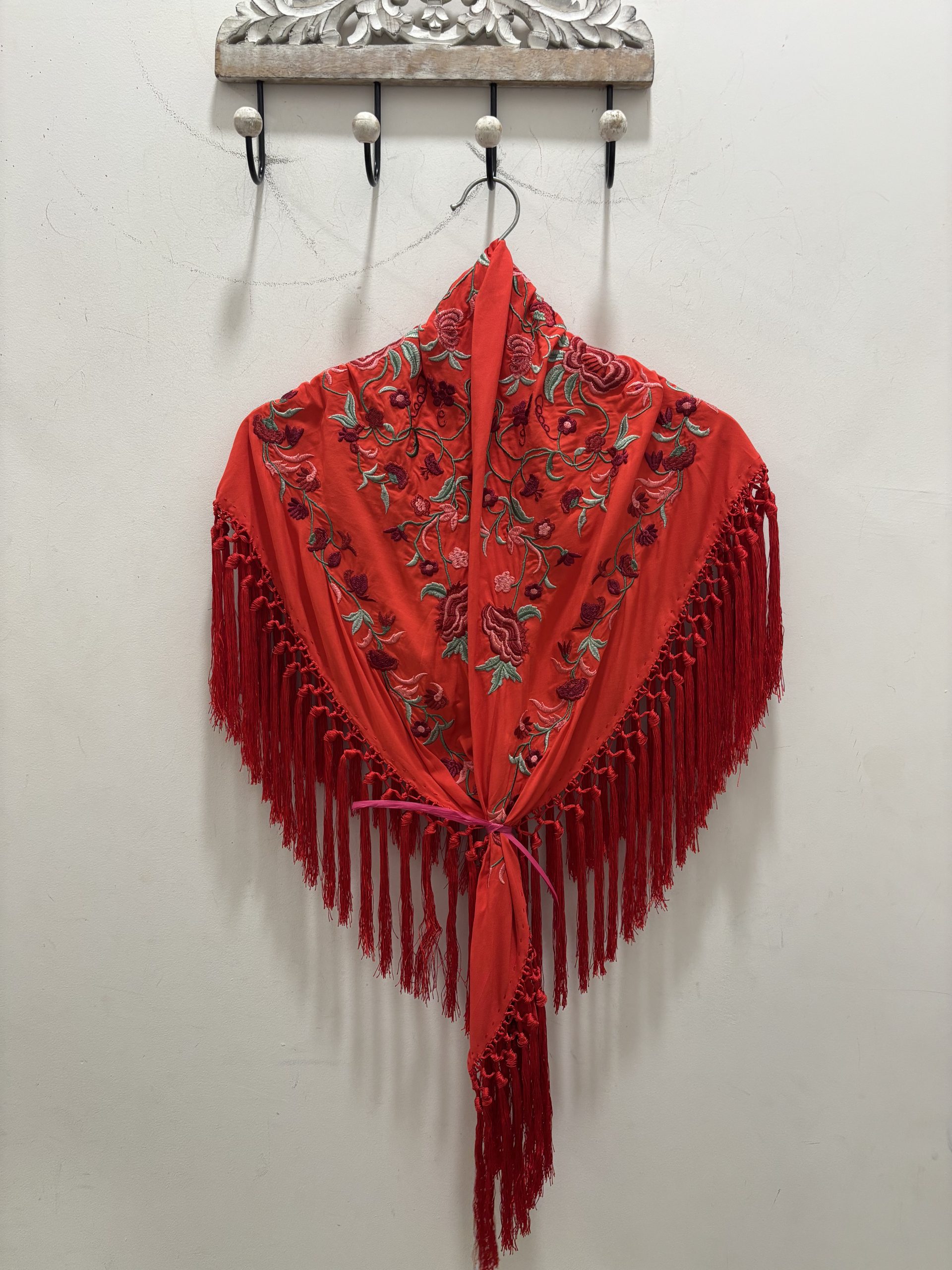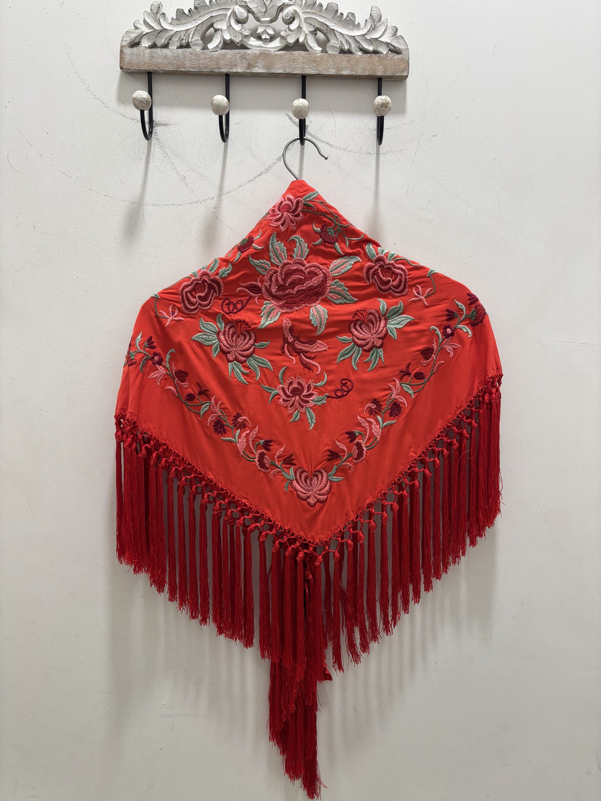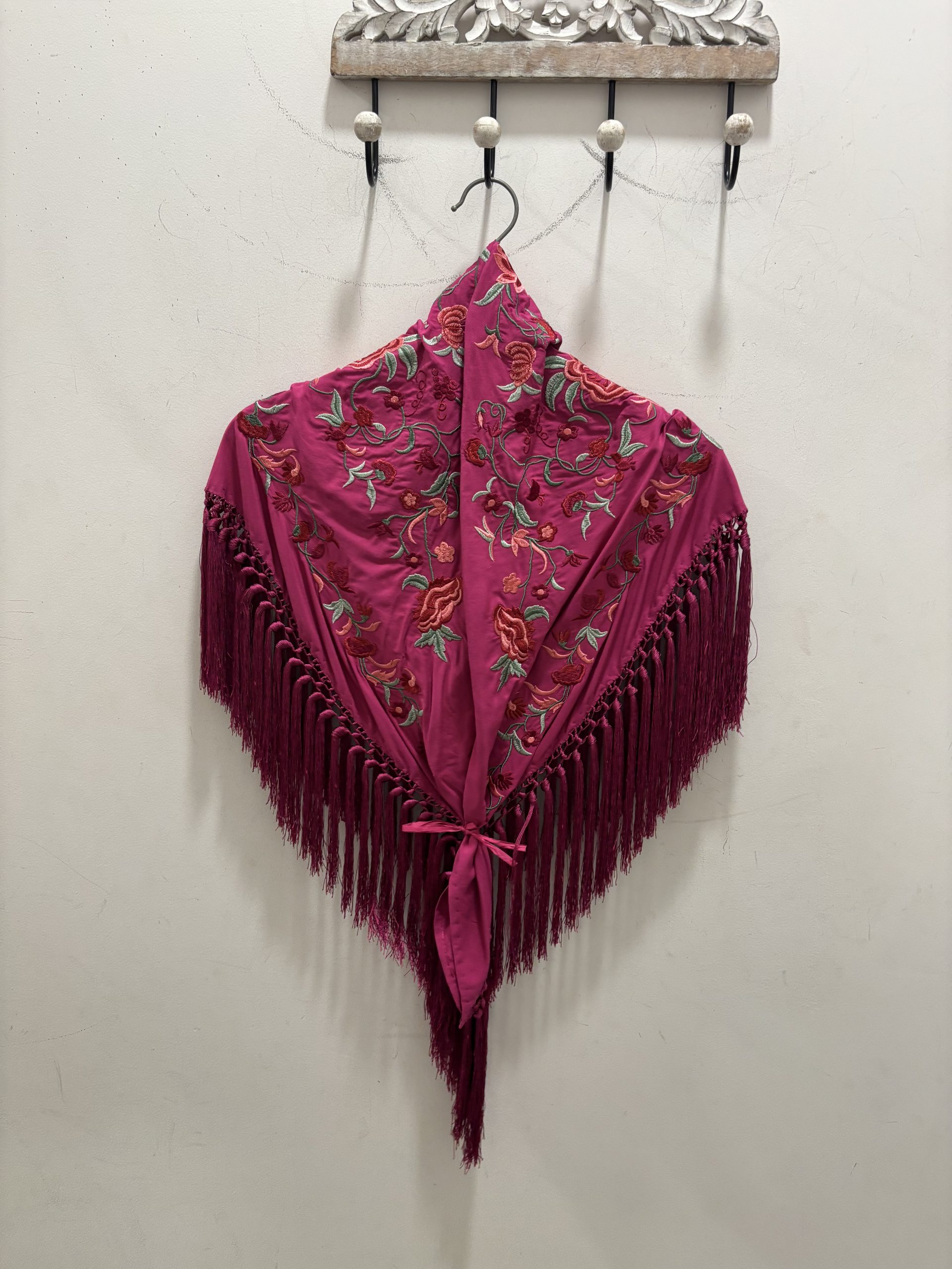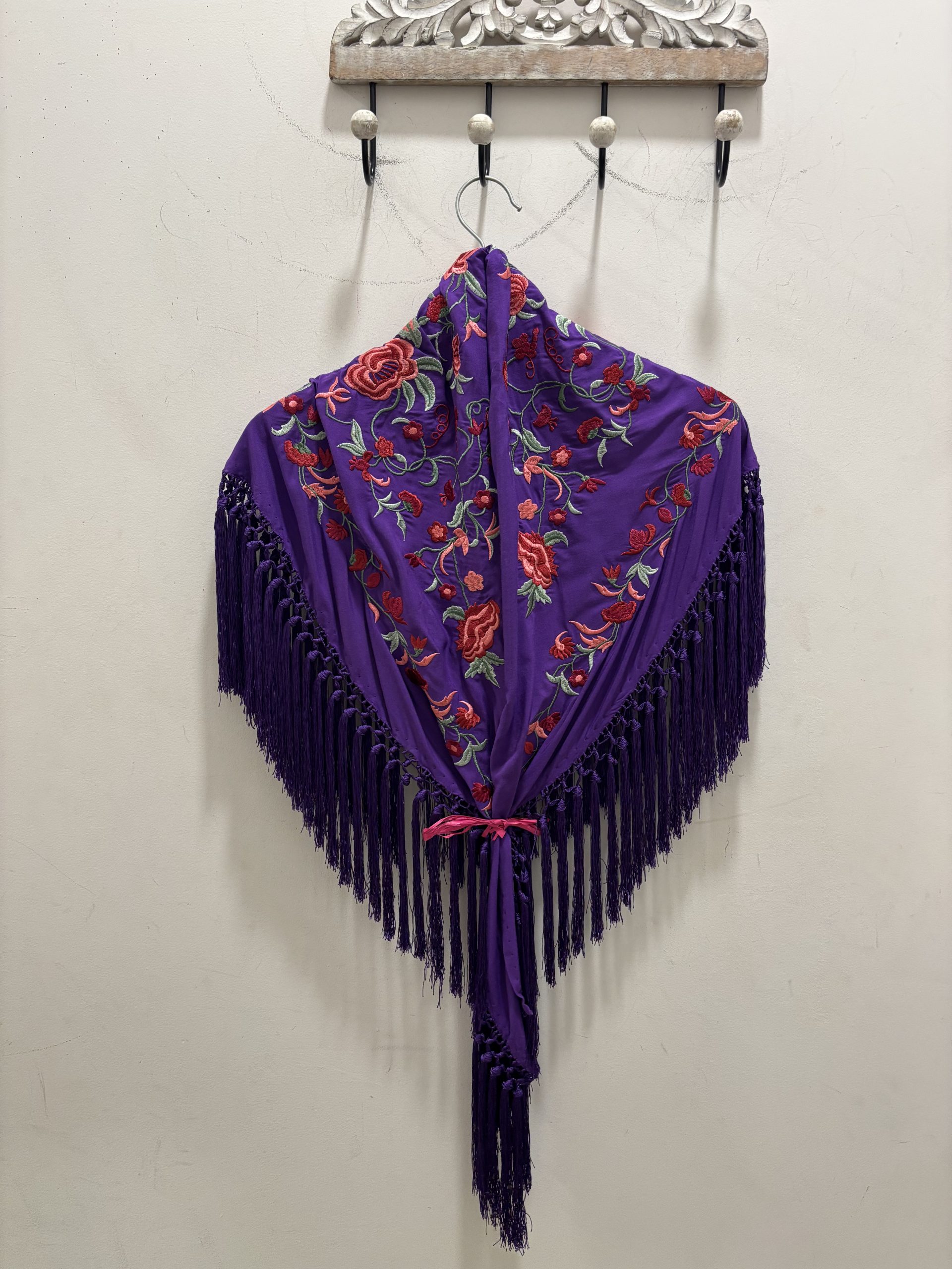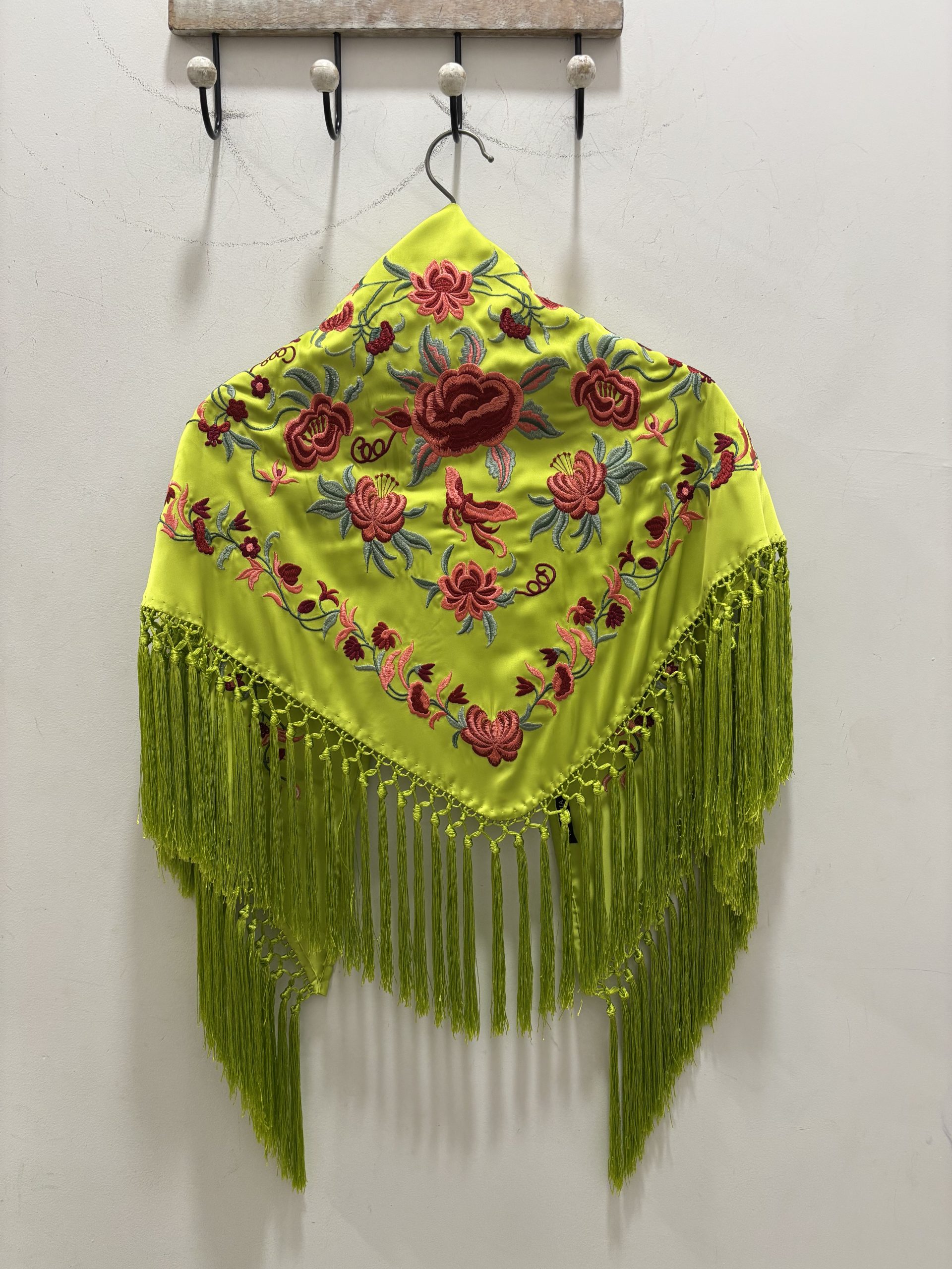 mantoncillo  algodón de seda, flecado a mano, bordado a bastidor