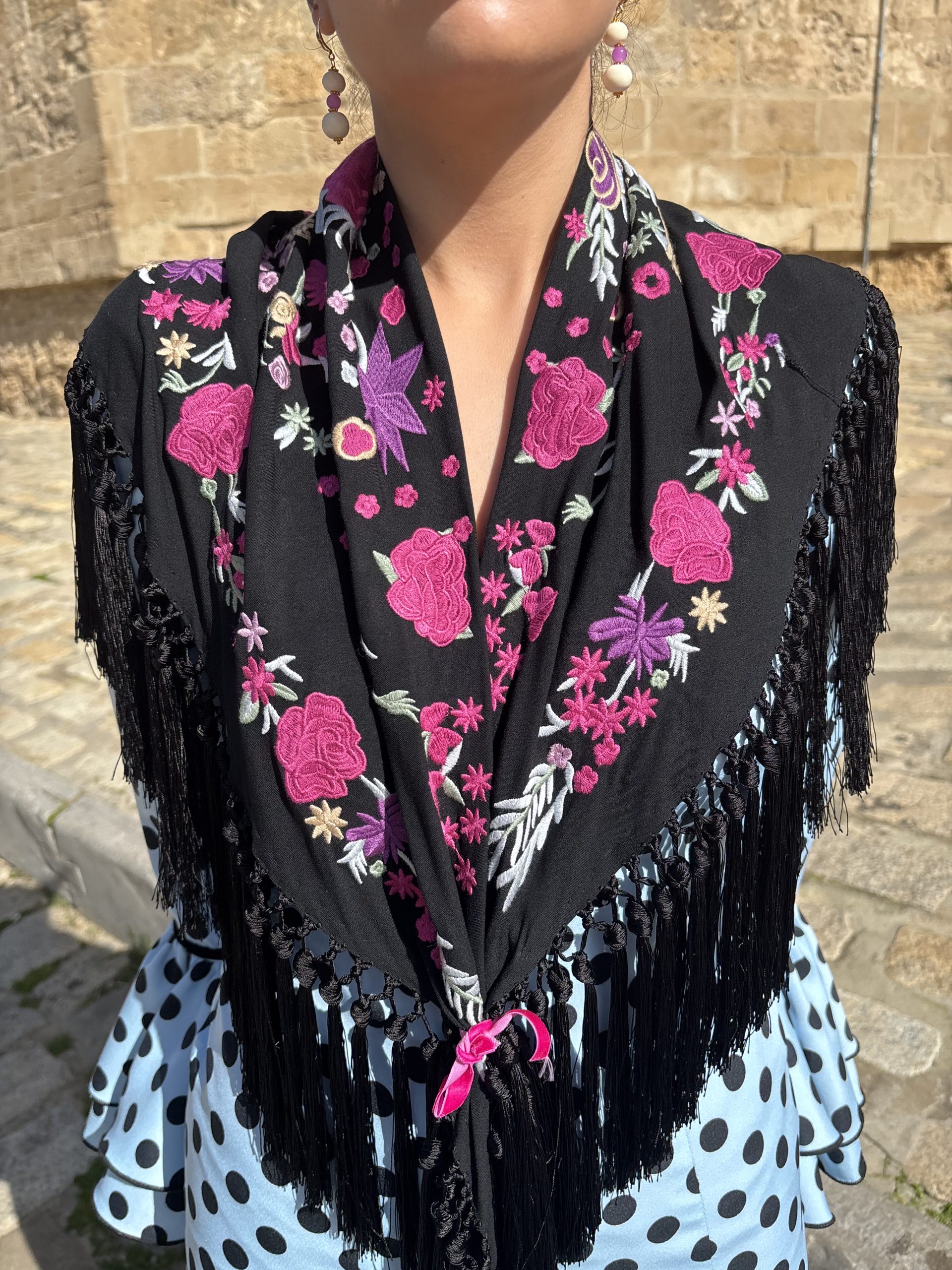 mantoncillo algodón bordado, flecado a mano