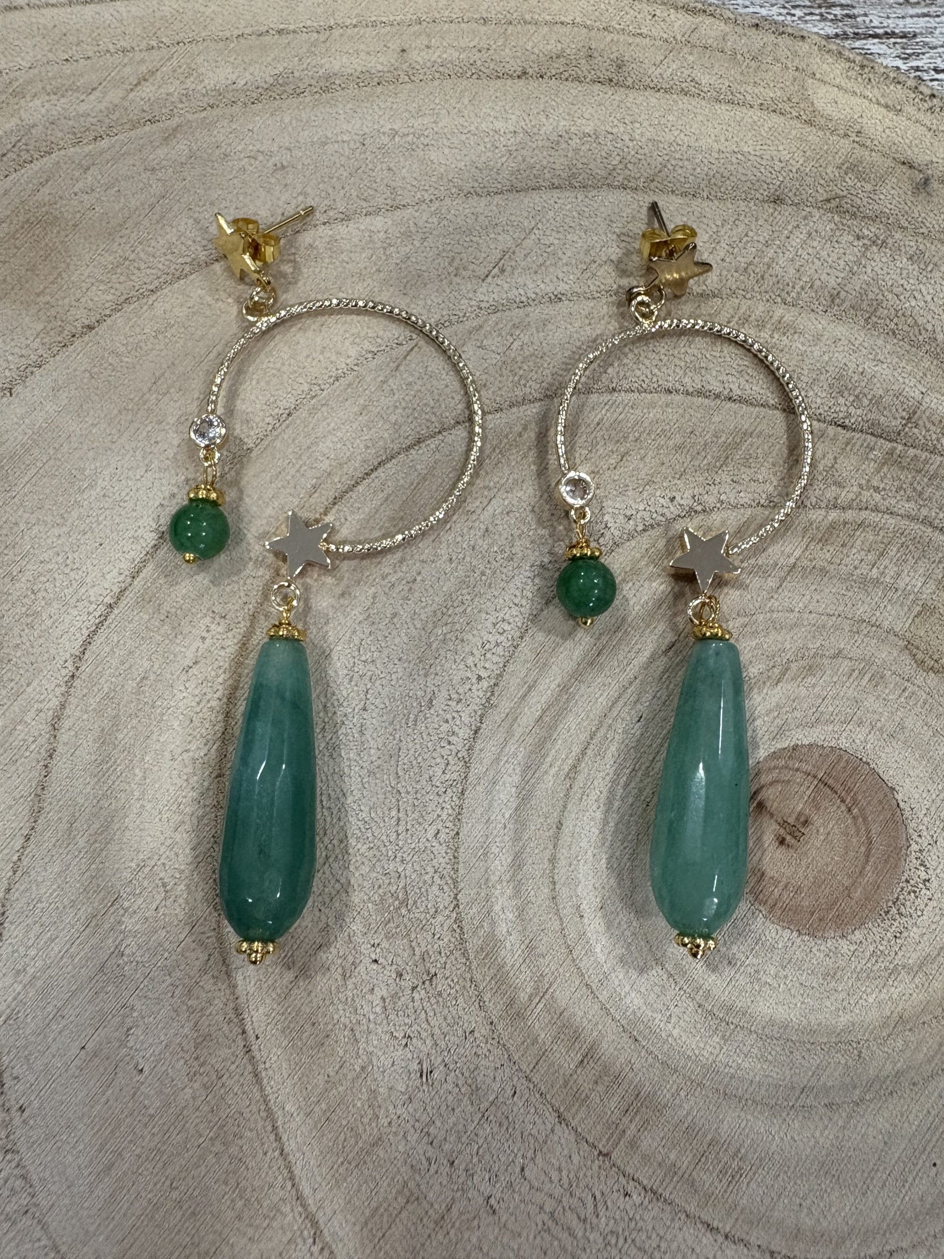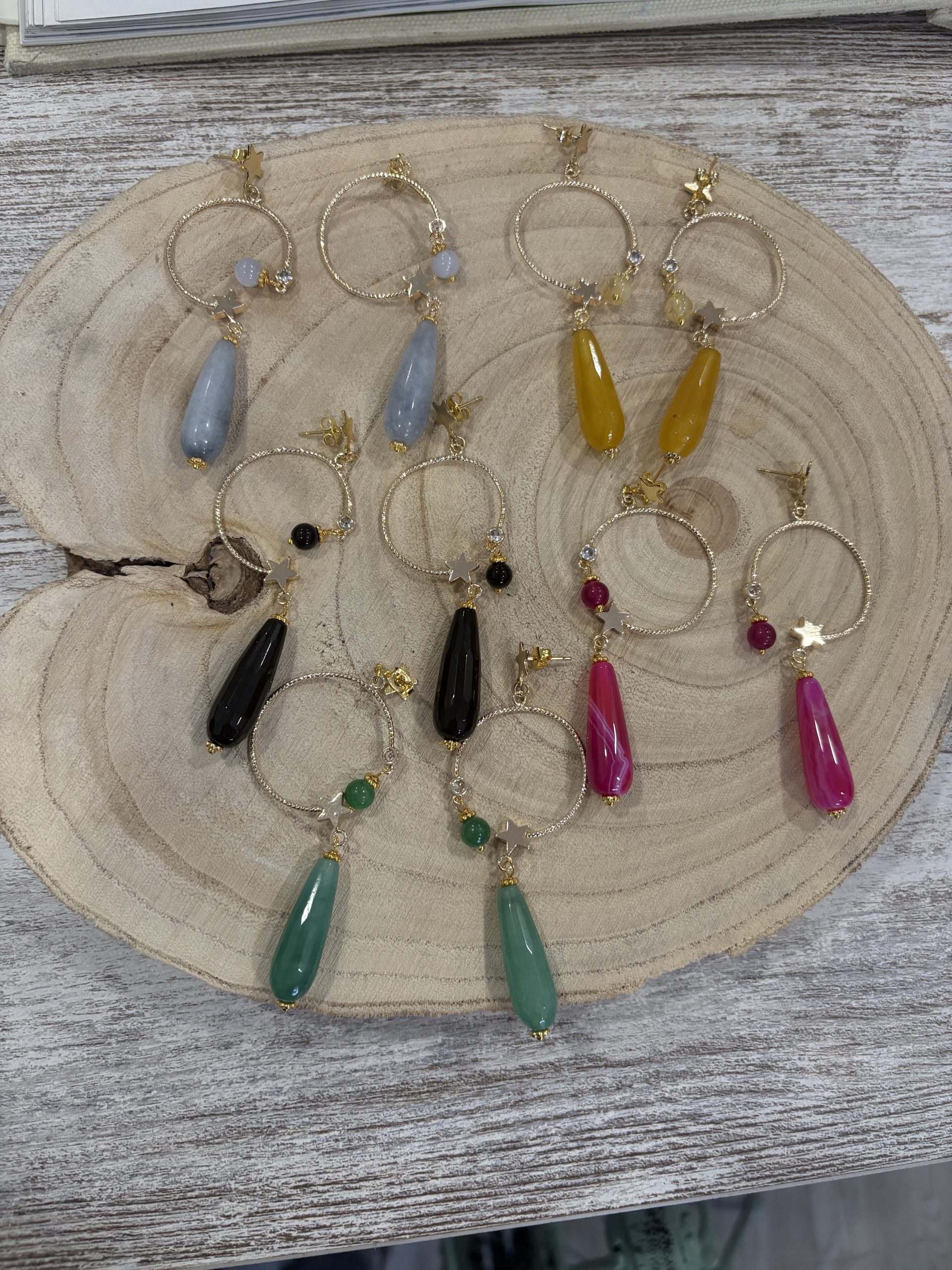 pendiente compuesto aro dorado y piedra color