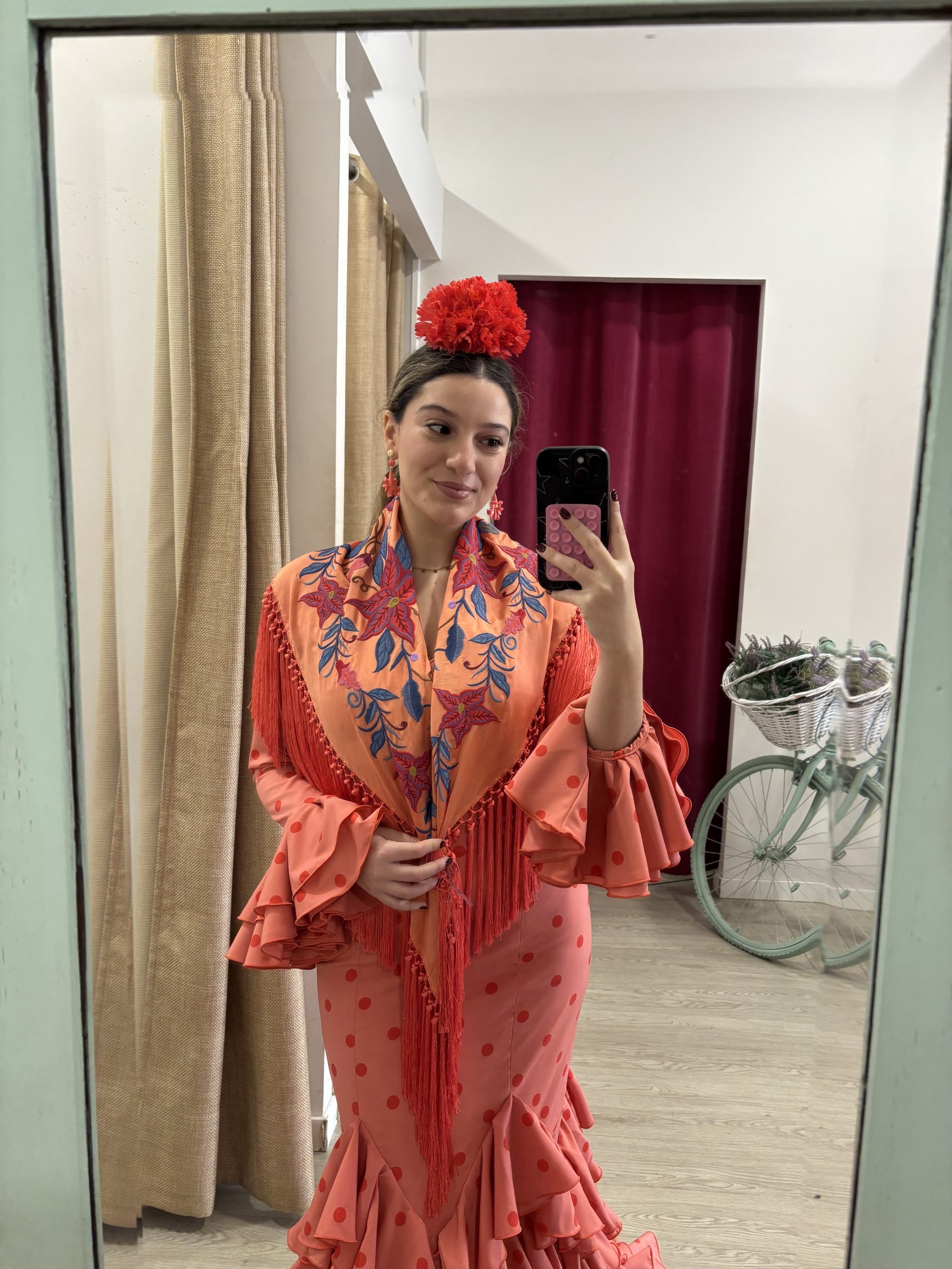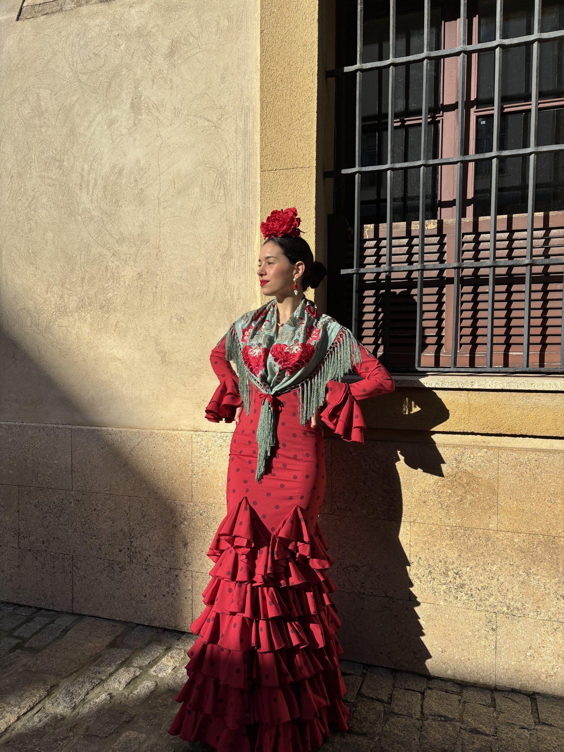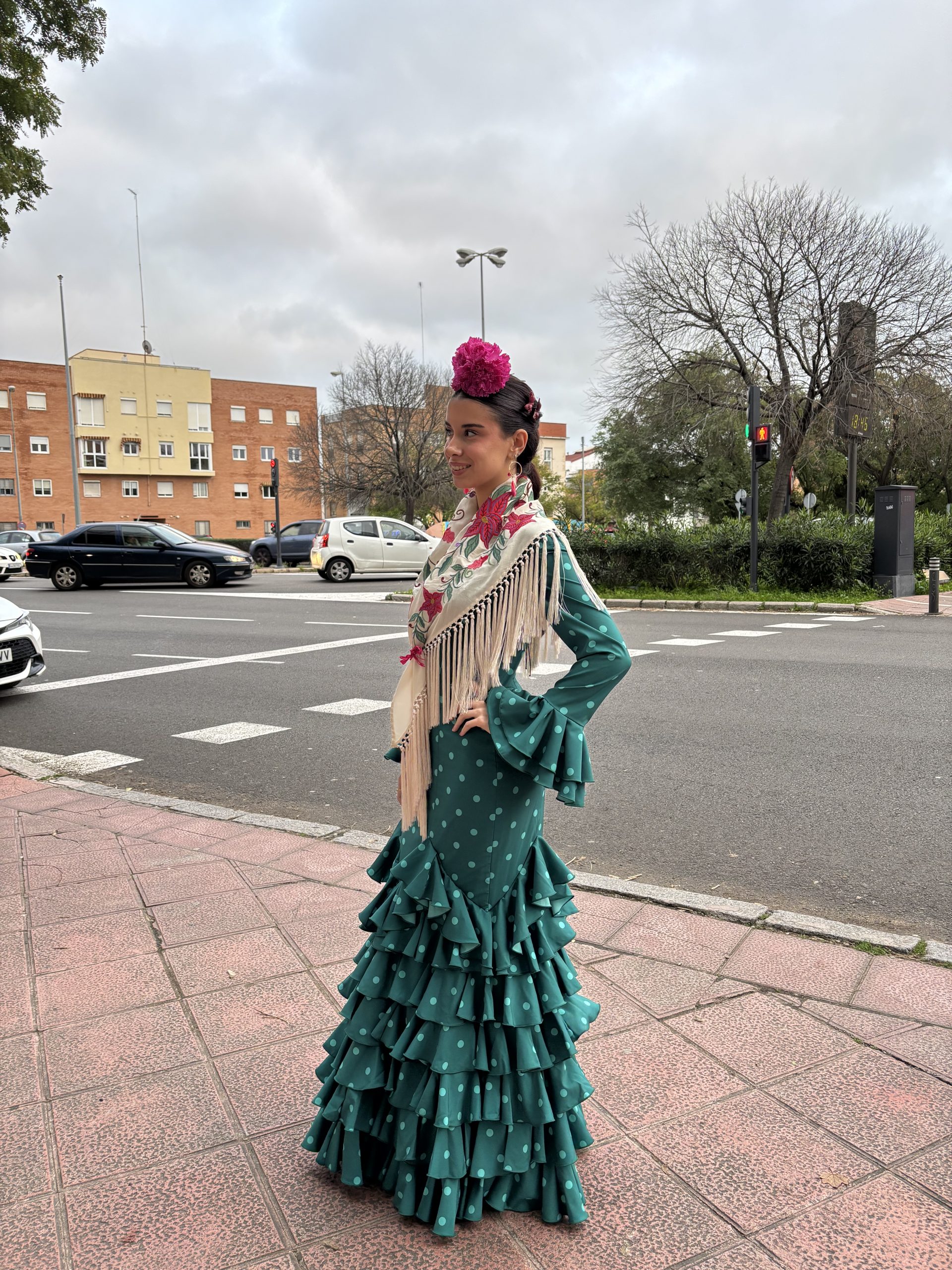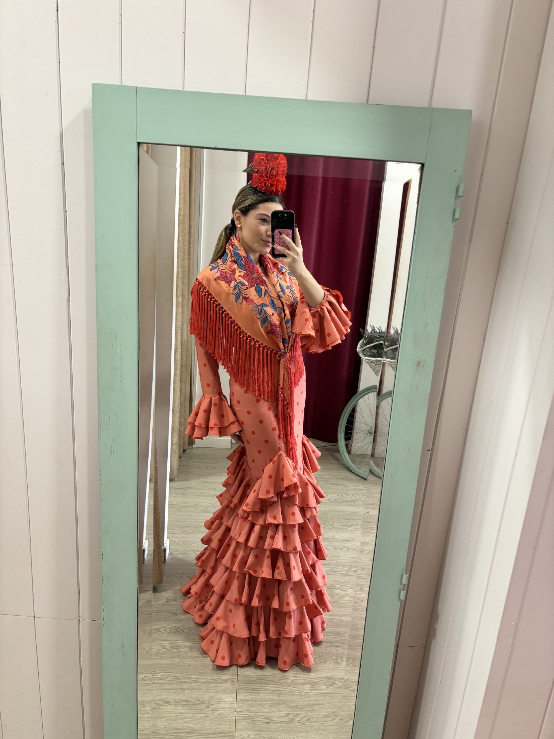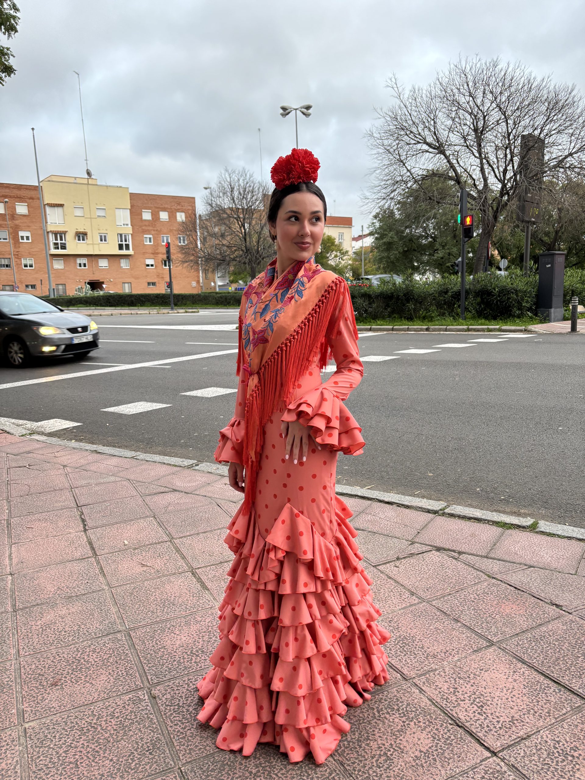 traje de flamenca, estampado lunar, compuesto por siete volantes en tejido de algodón(Disponible de 34 a 48) pedidos al número : 955 22 55 31